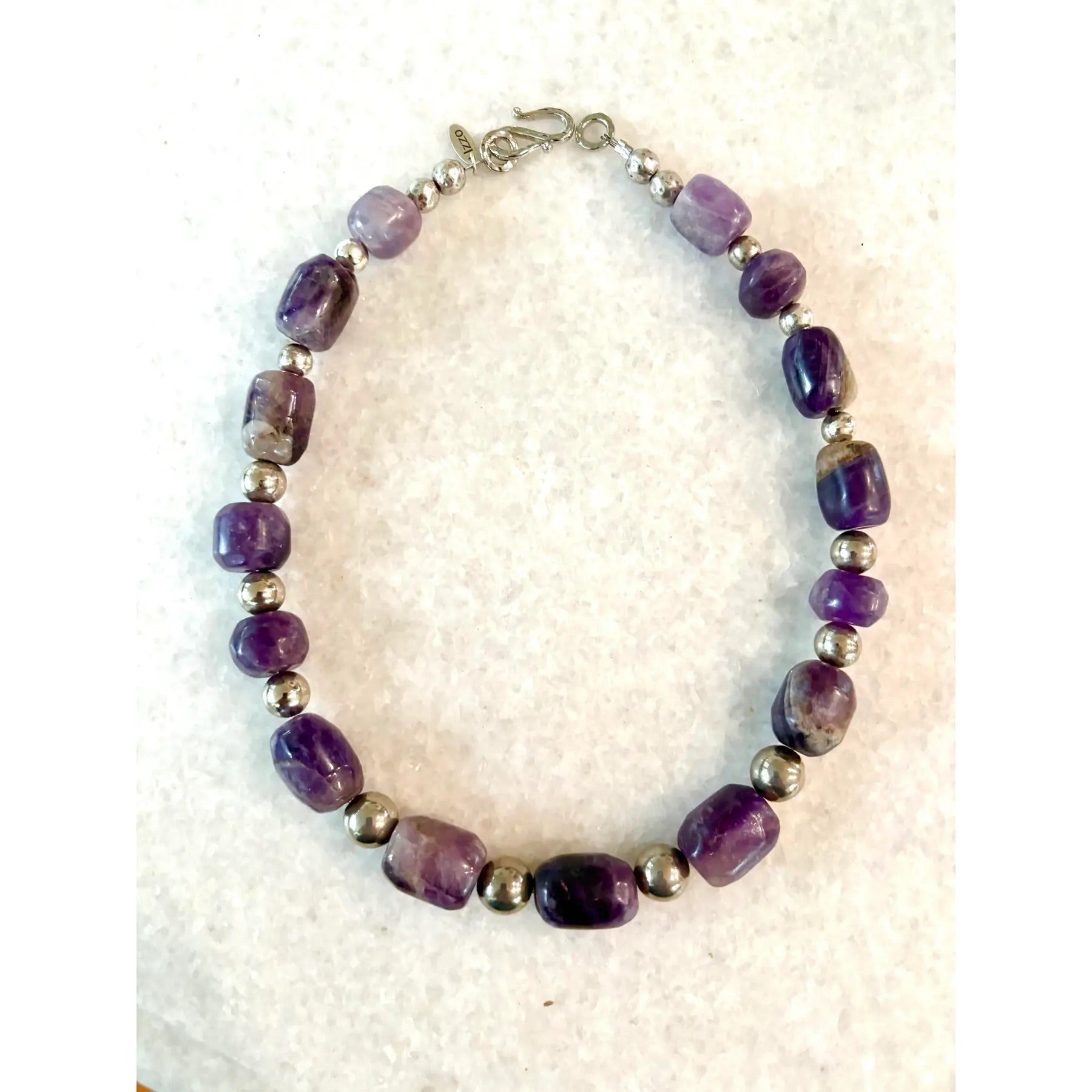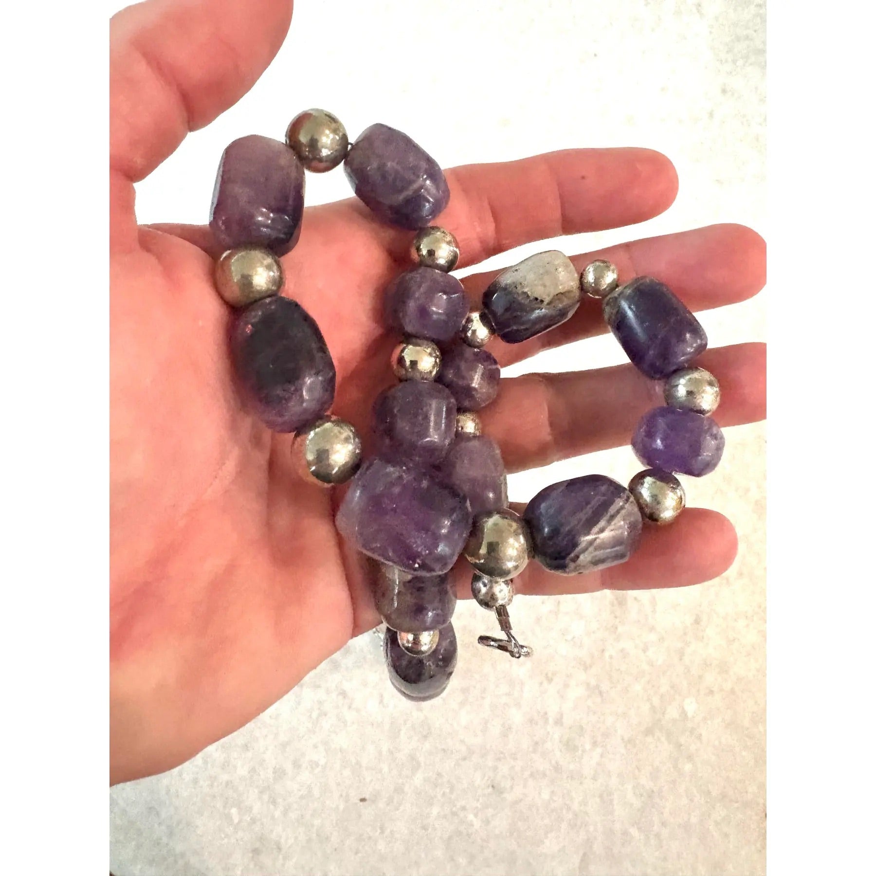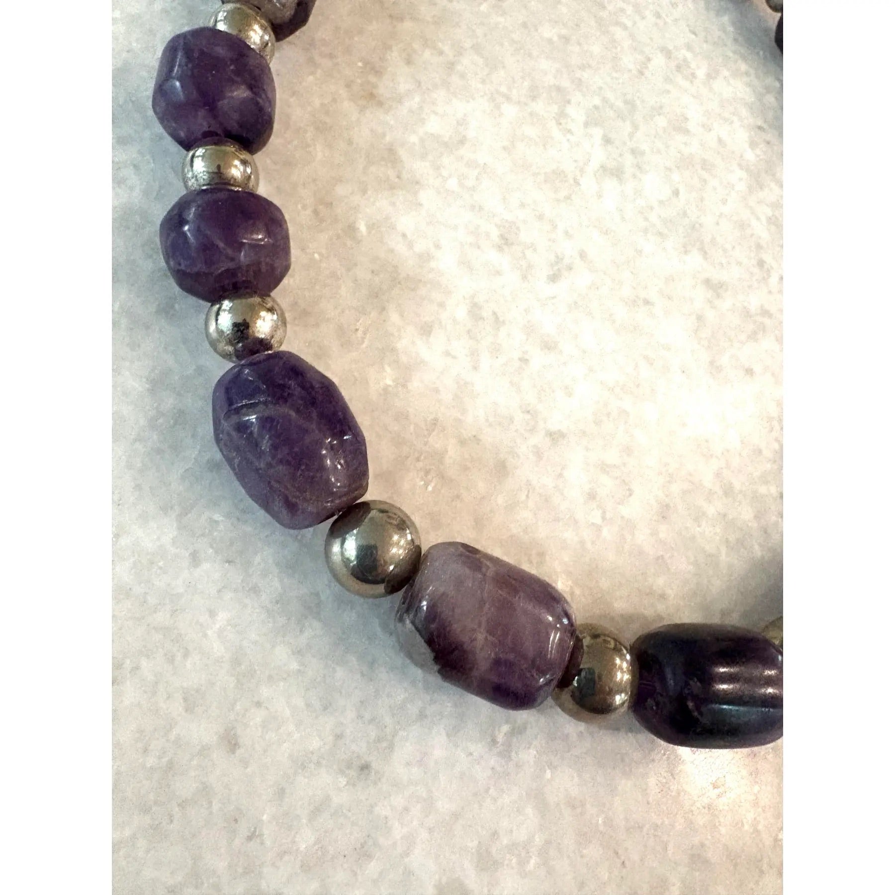 Raras cuentas antiguas de amatista precolombina talladas a mano. Hechas a mano con separadores y cierre de plata. Reencordado por Matthew Izzo