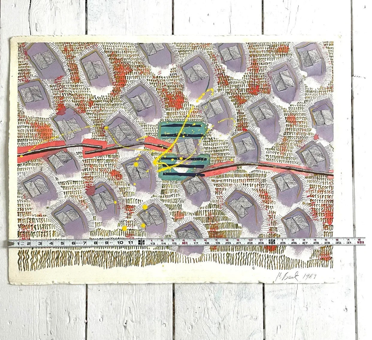 Pintura Acrílica Abstracta sobre Papel Barbara Beck 1989