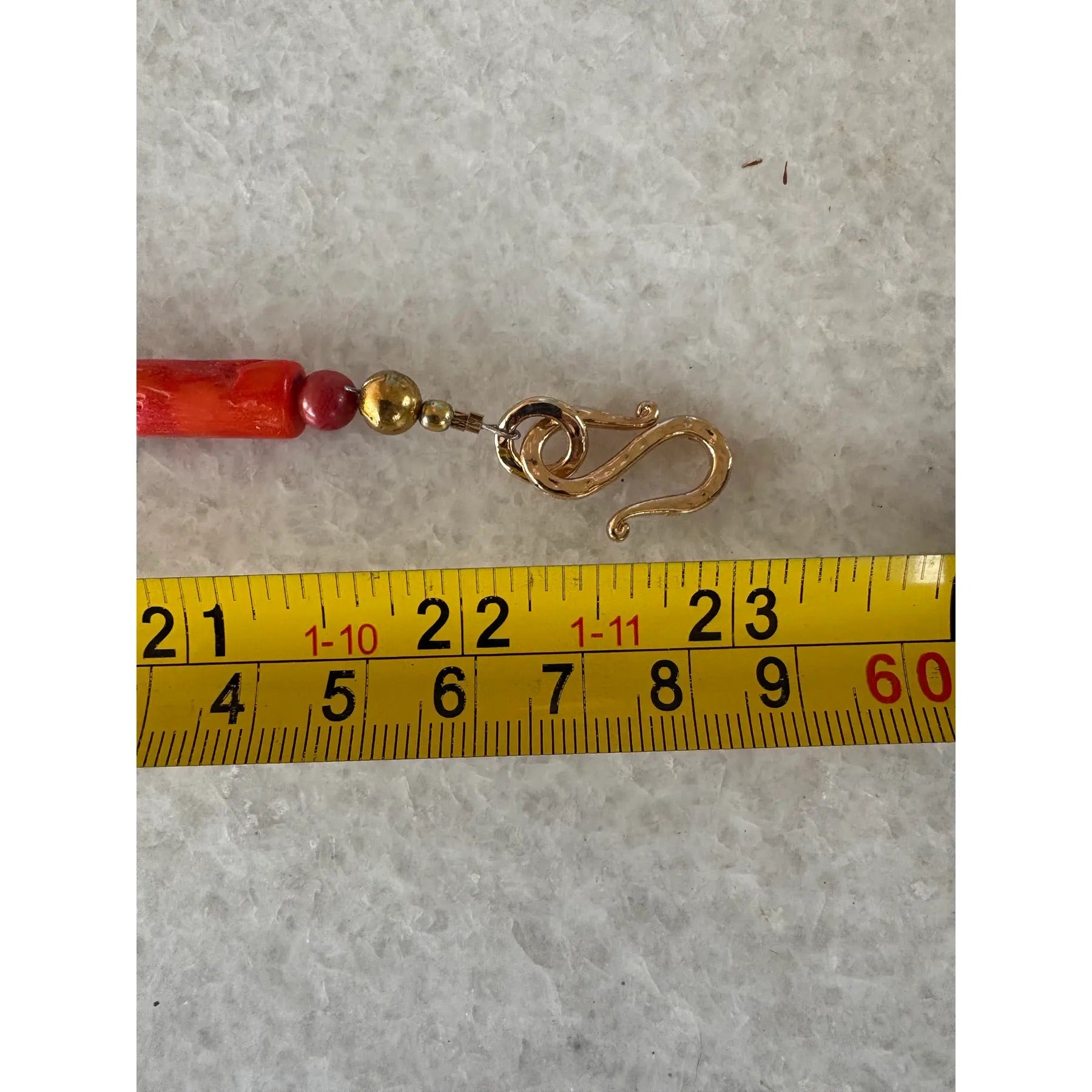 Precioso collar de coral con cuentas de coral y cierre de gancho tono dorado.