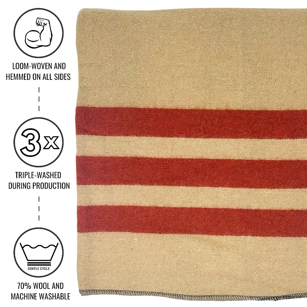 70% LANA - La lana es un tejido natural probado por el tiempo que te mantendrá abrigado, incluso cuando esté mojado. El resto de la manta está compuesto por un 30% de fibras sintéticas hipoalergénicas para mayor durabilidad y lavabilidad. La lana es un material naturalmente ignífugo. La manta en sí no está tratada con ningún producto químico ignífugo adicional, lo que la hace segura para ti y tu familia.