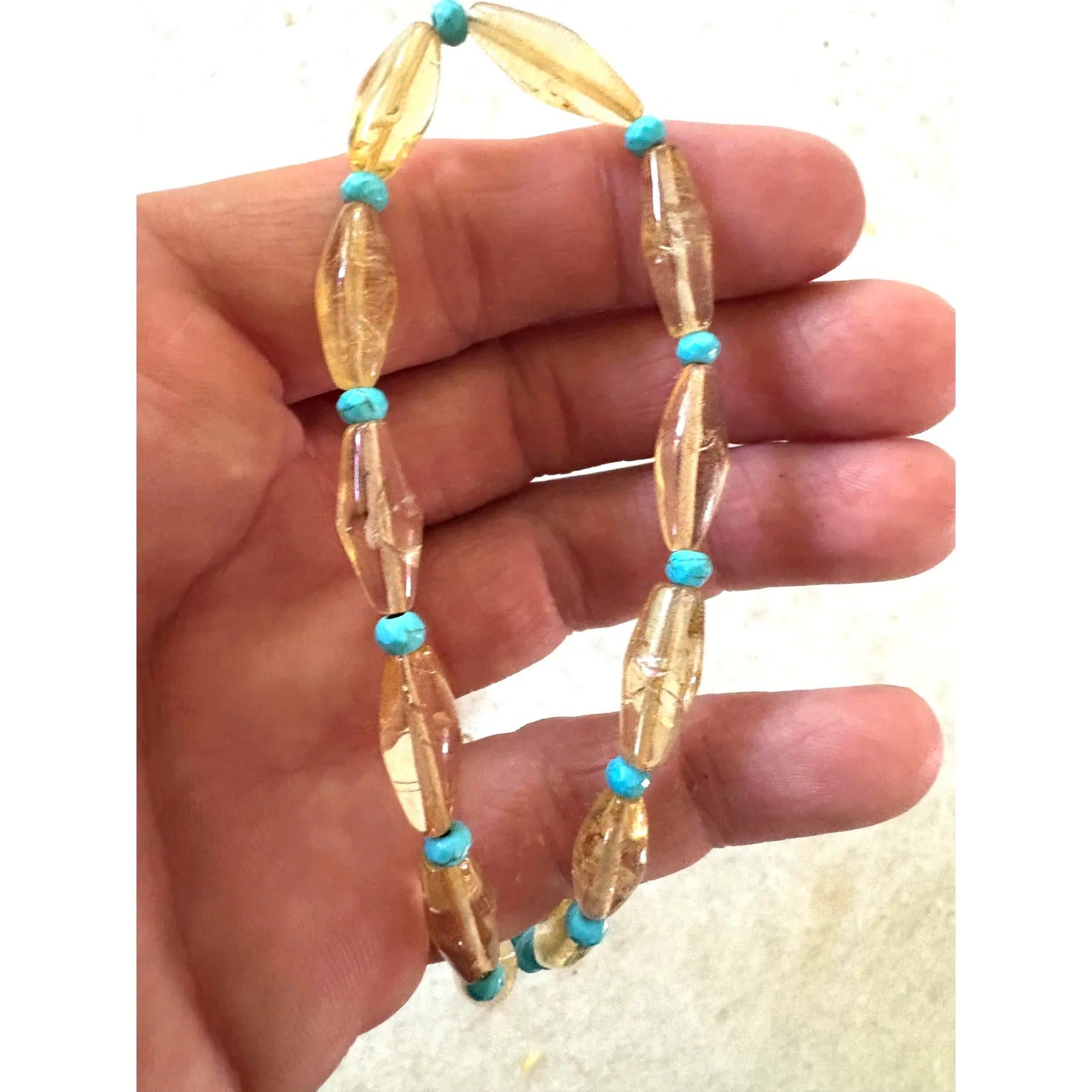 Precioso collar de cuentas de citrino y turquesa. El citrino es vintage.