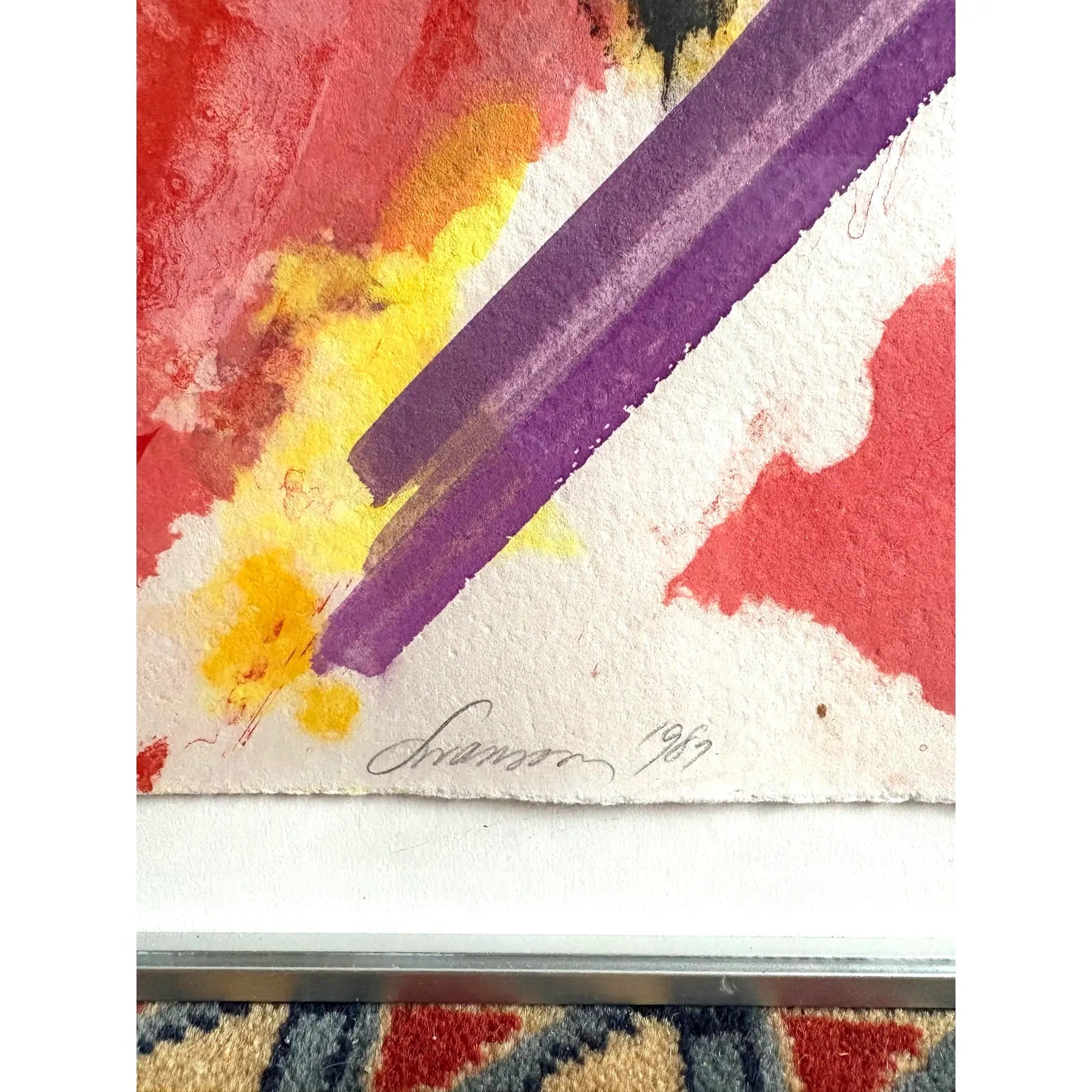 Gran pintura a la acuarela de David Swanson sobre papel en marco de metal