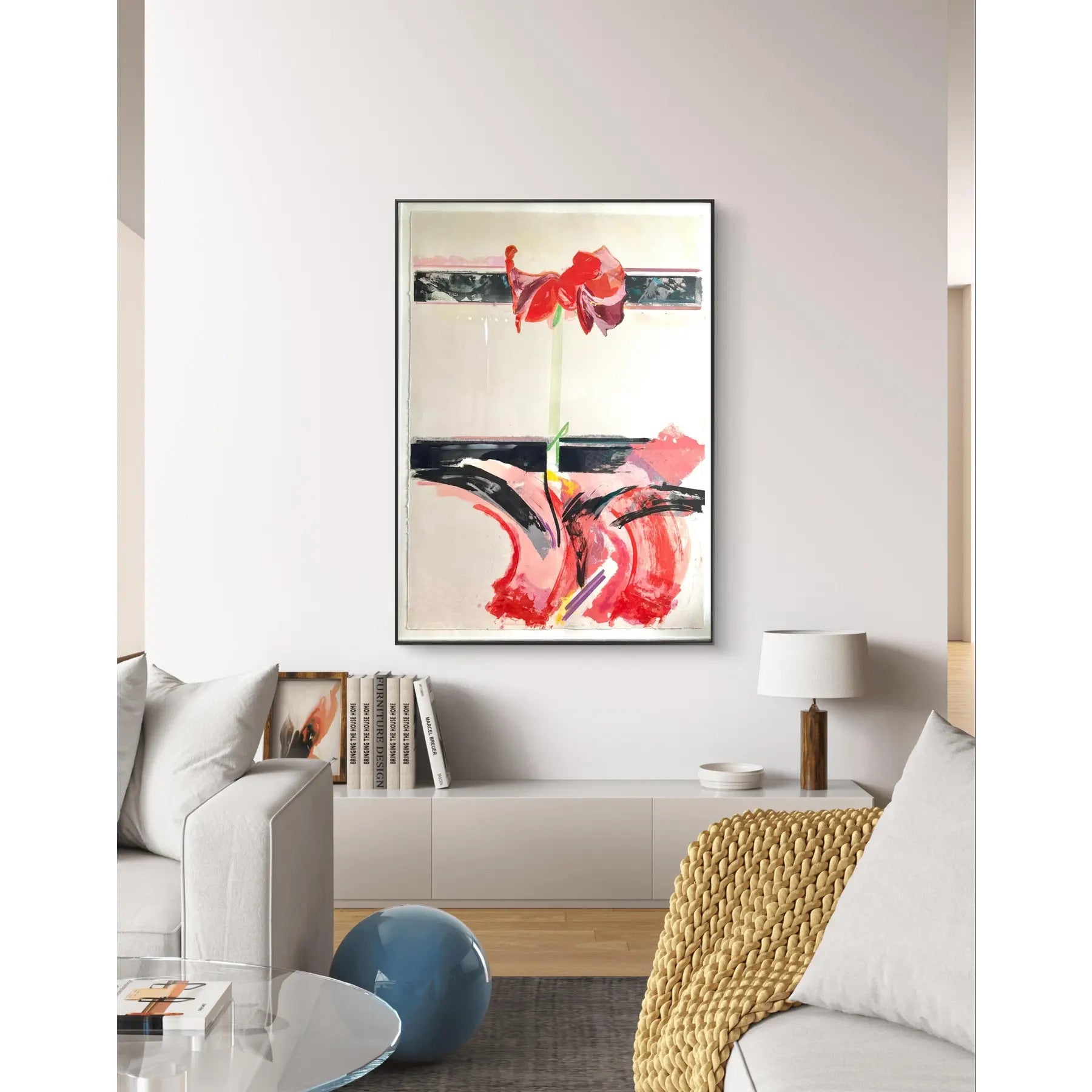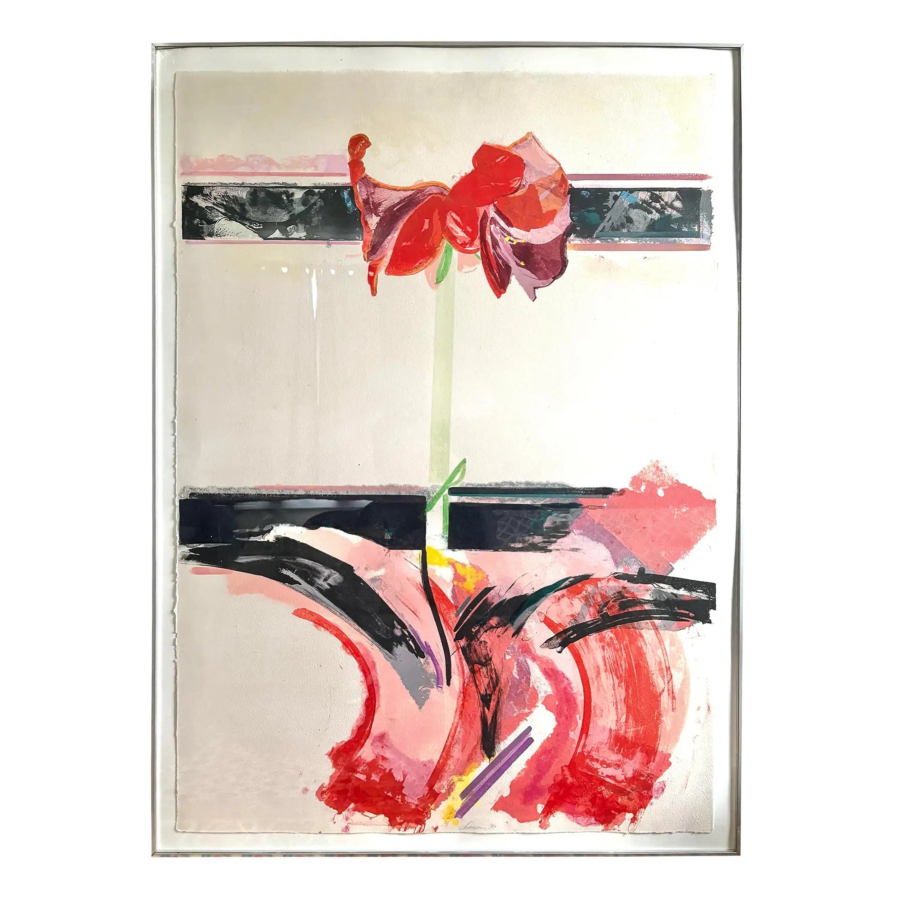 Impresionante acuarela de gran formato sobre papel de David Swanson enmarcada en su marco original de metal plateado.