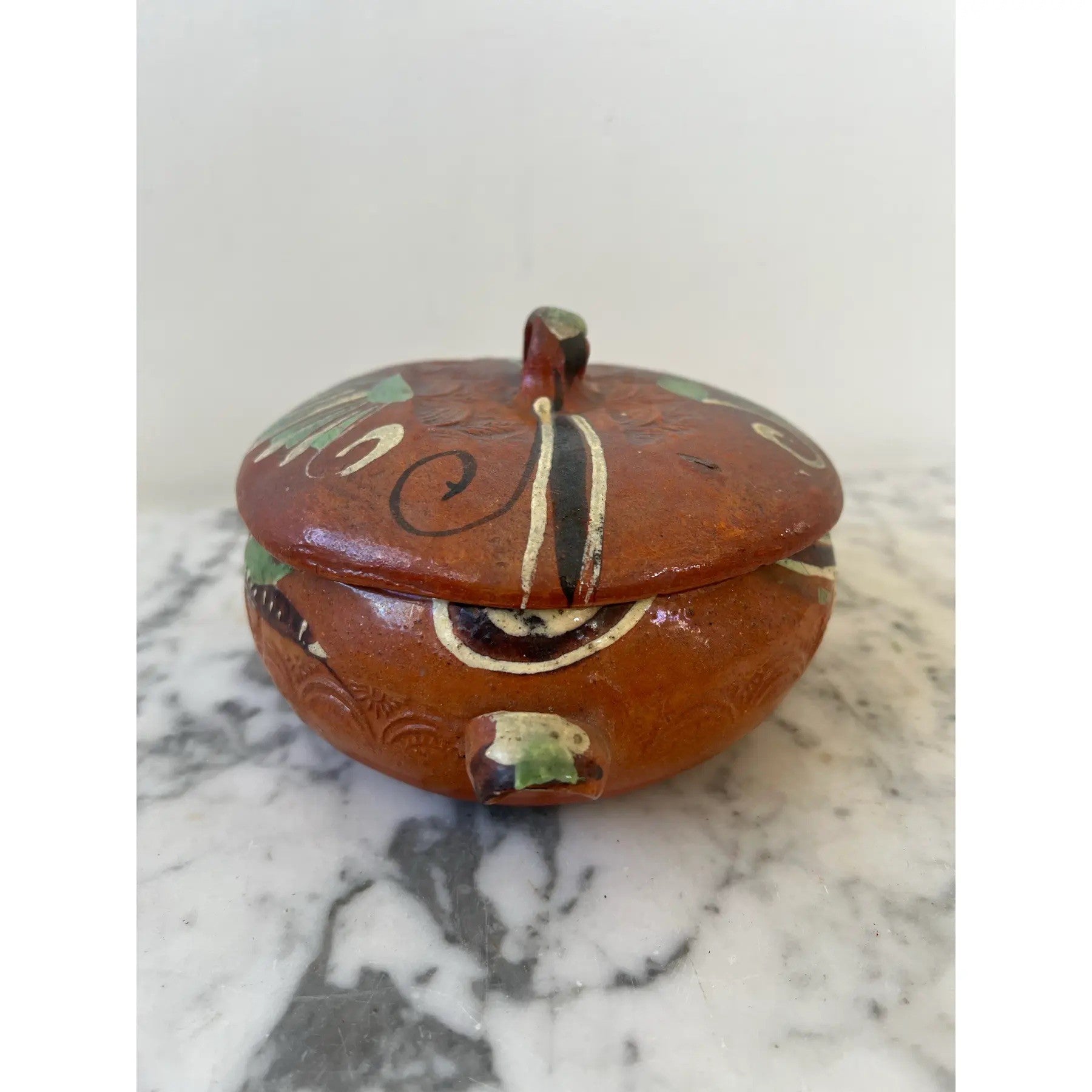 Cuenco de terracota mexicano pintado a mano con tapa, sellado "Hecho en México"