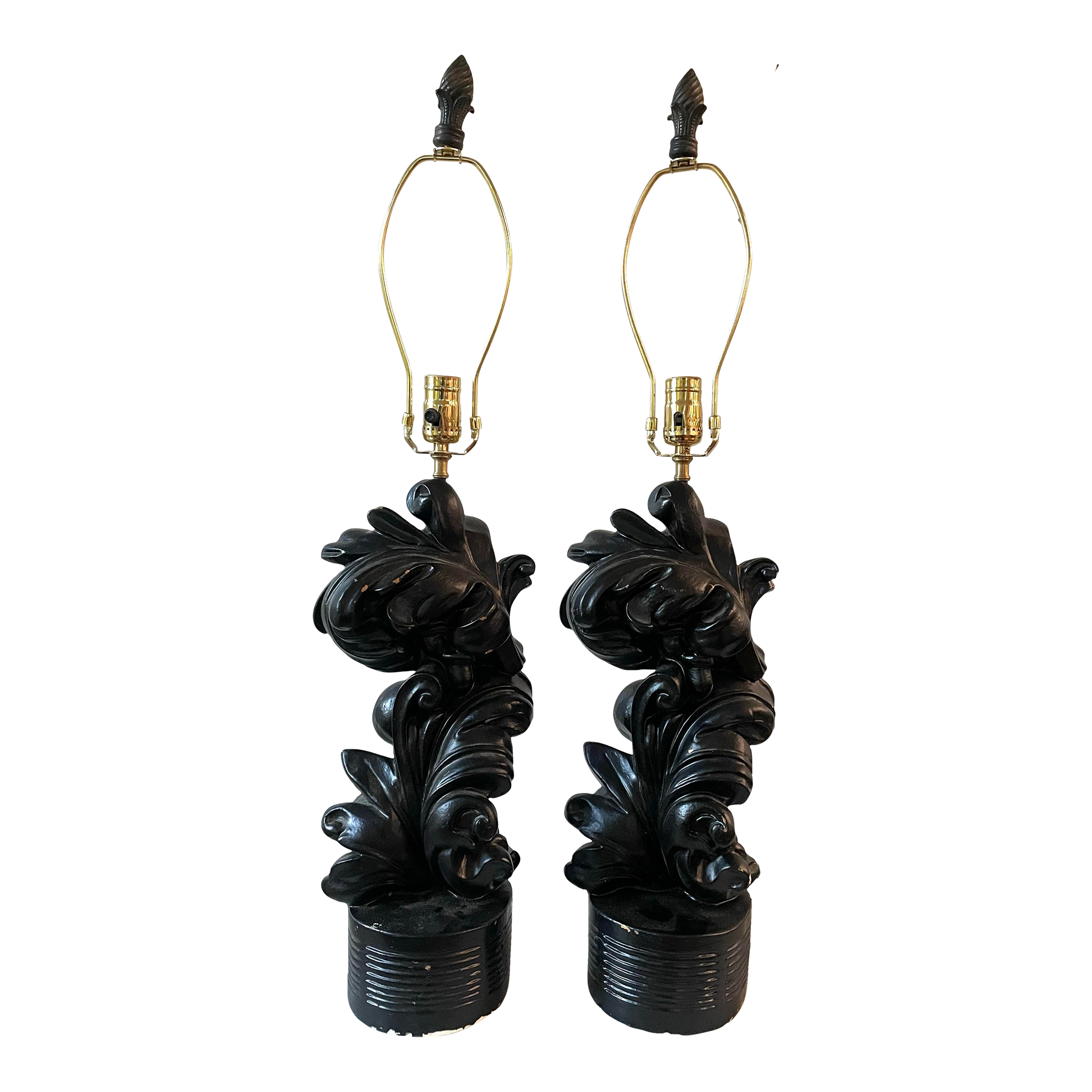 Lámparas de yeso pintado de negro estilo Hollywood Regency