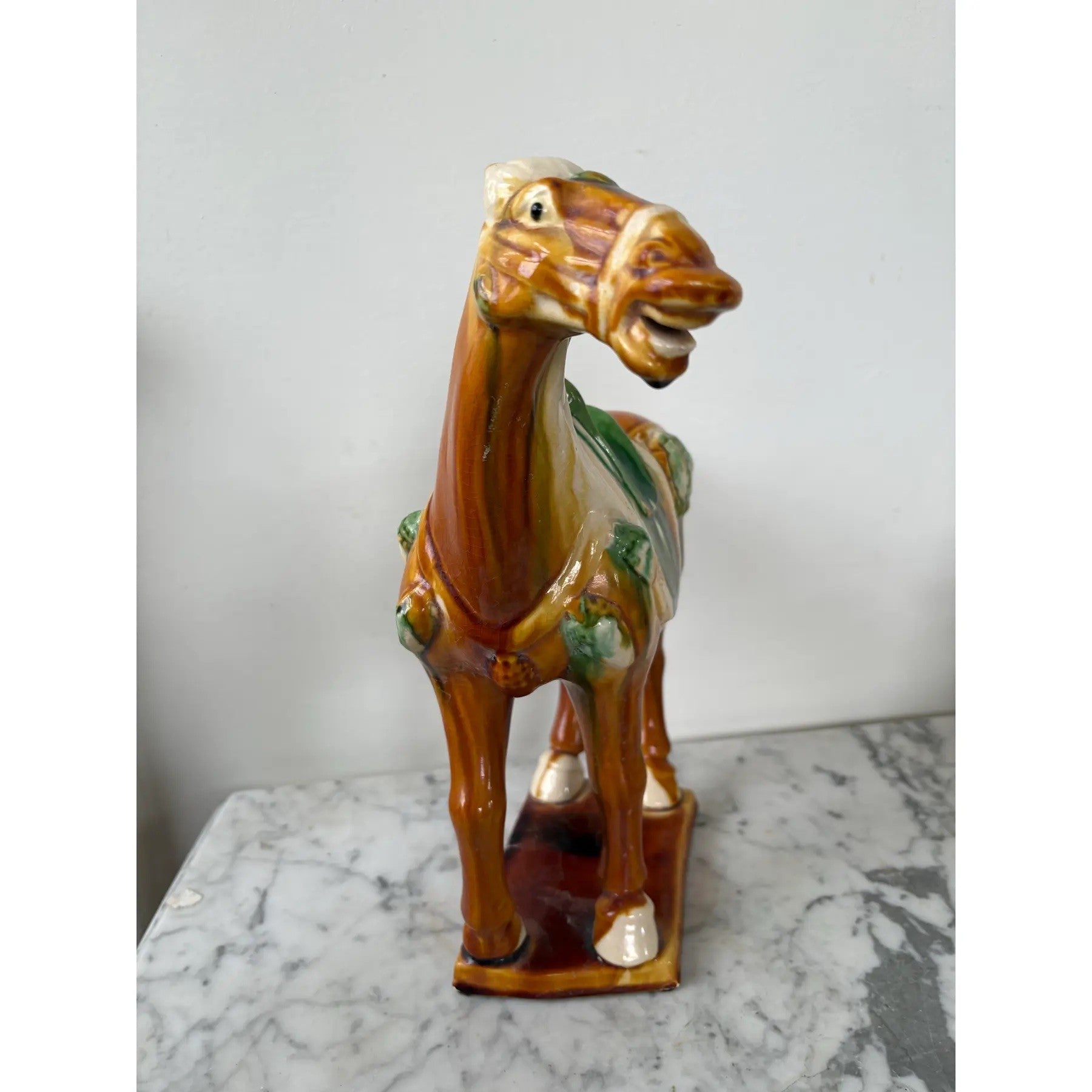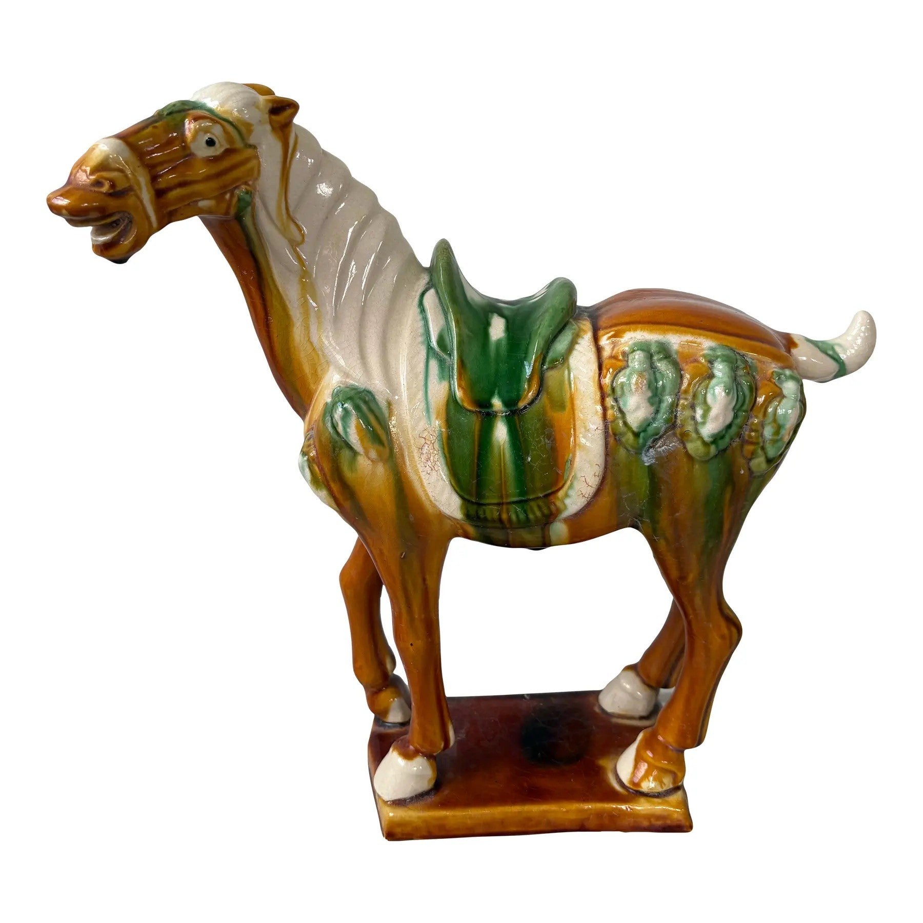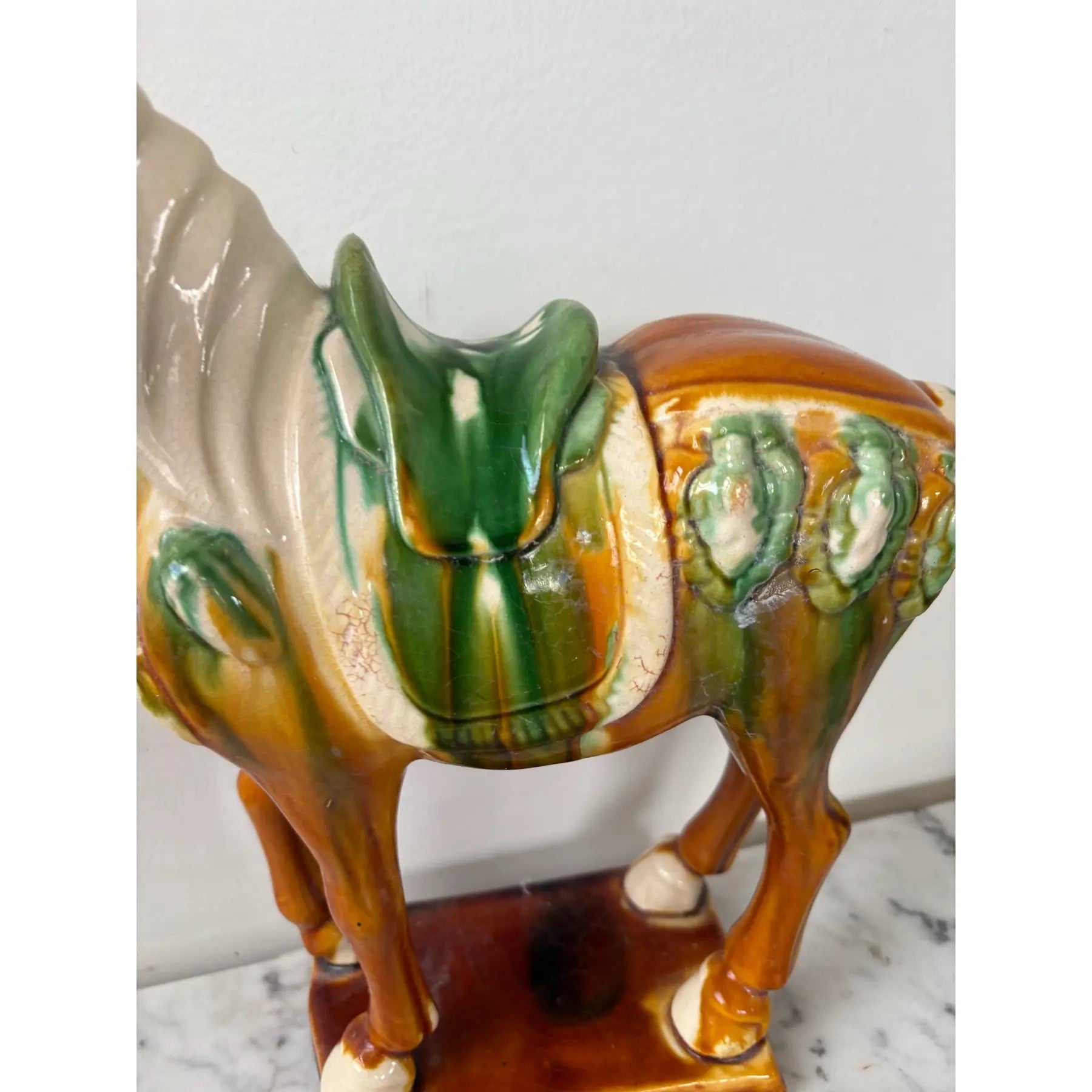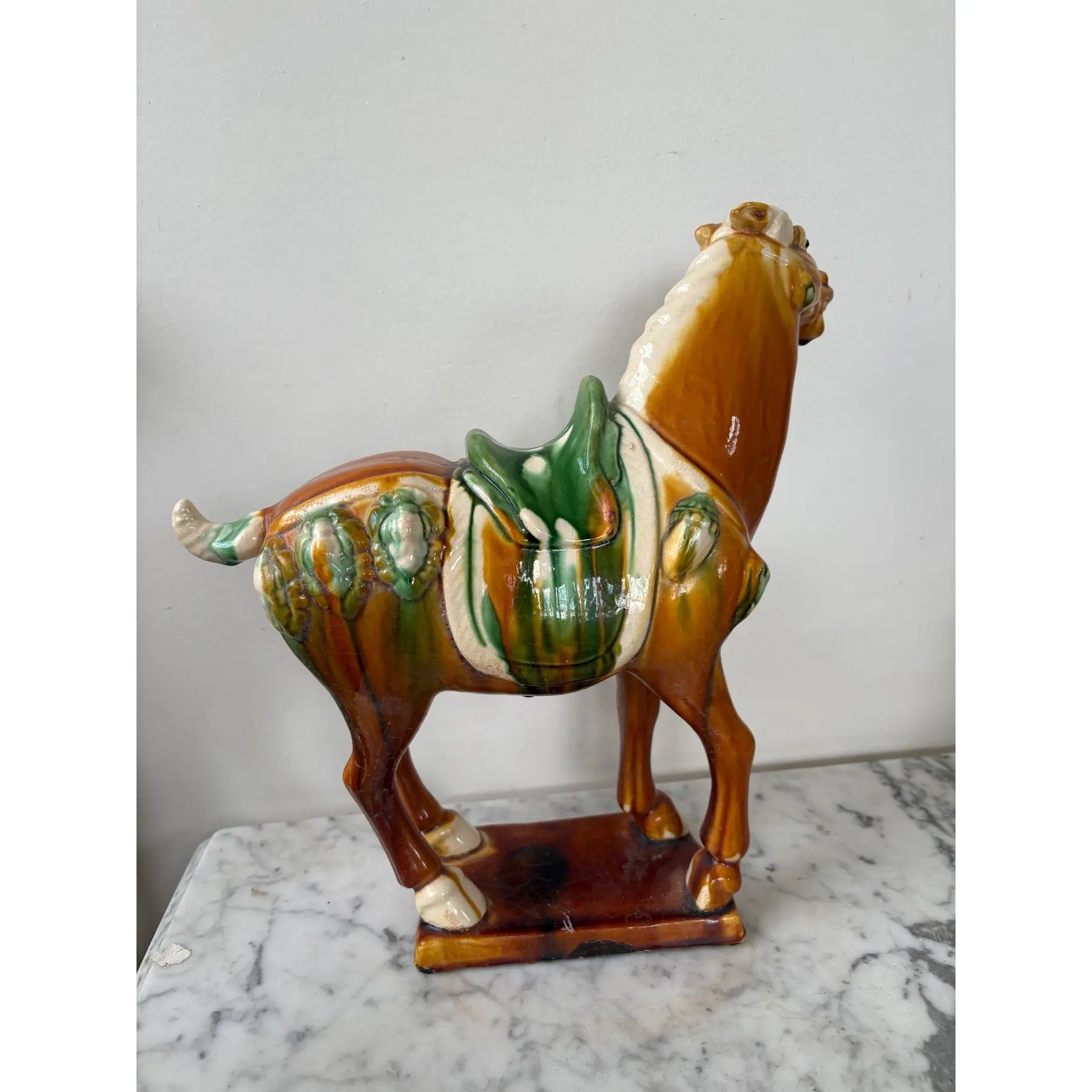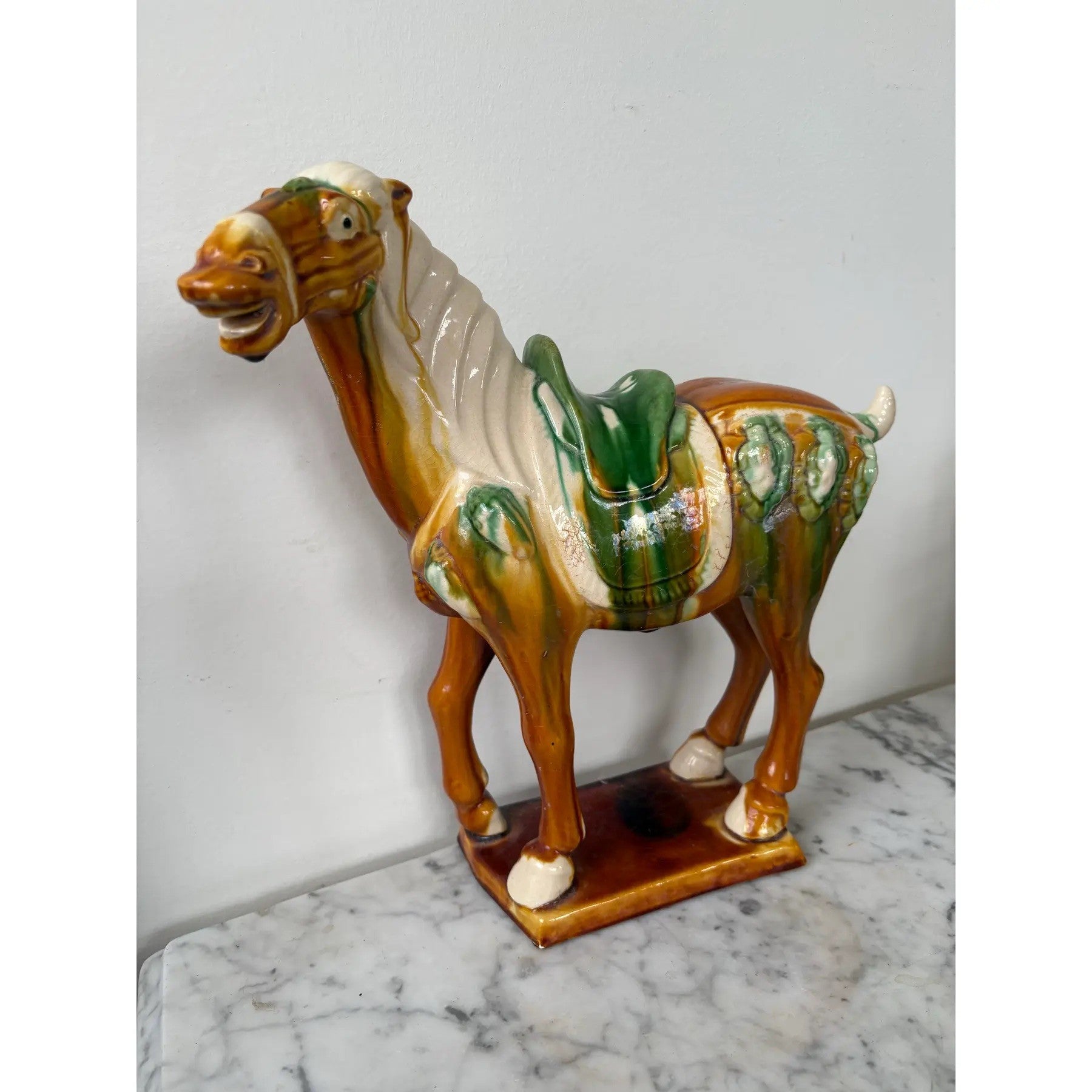 Exquisito ejemplo de mayólica. Una escultura de un caballo de guerra chino.