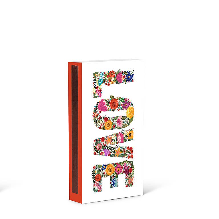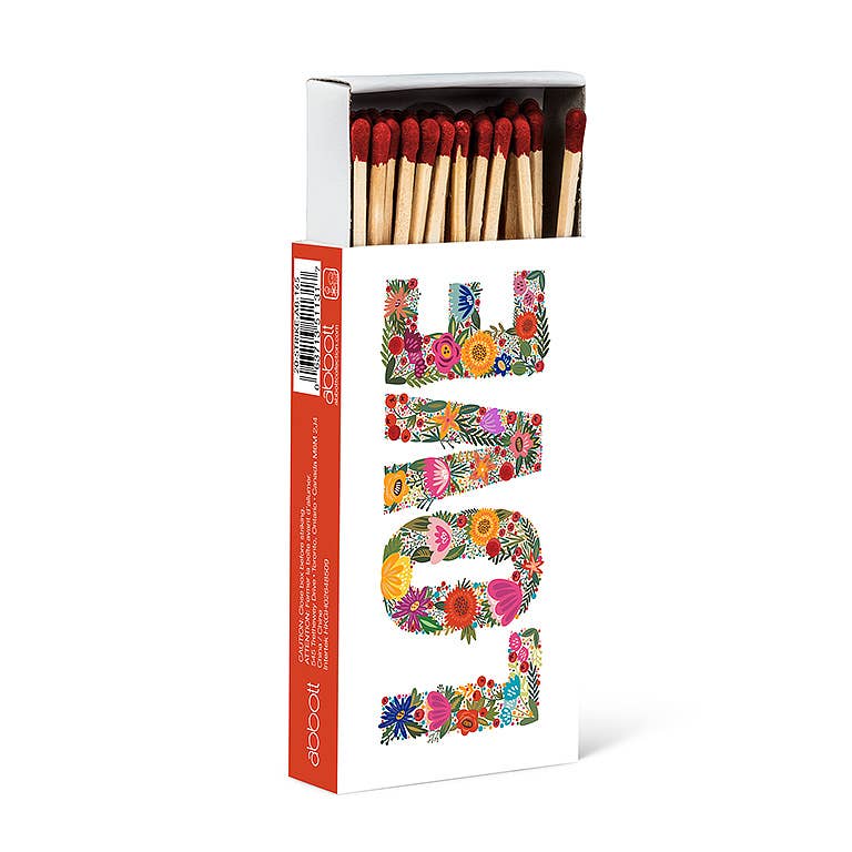 Enciende tu chimenea, pozo de fuego o brasero con un toque floral con esta caja de cerillas Floral LOVE. Exclusiva de Abbott, esta elegante caja de cerillas blanca presenta la palabra "LOVE" escrita en coloridas flores ilustradas e incluye 45 cerillas de madera para ayudarte a encender tu fuego con estilo. También hay disponibles otras cajas de cerillas exclusivas de Abbott.