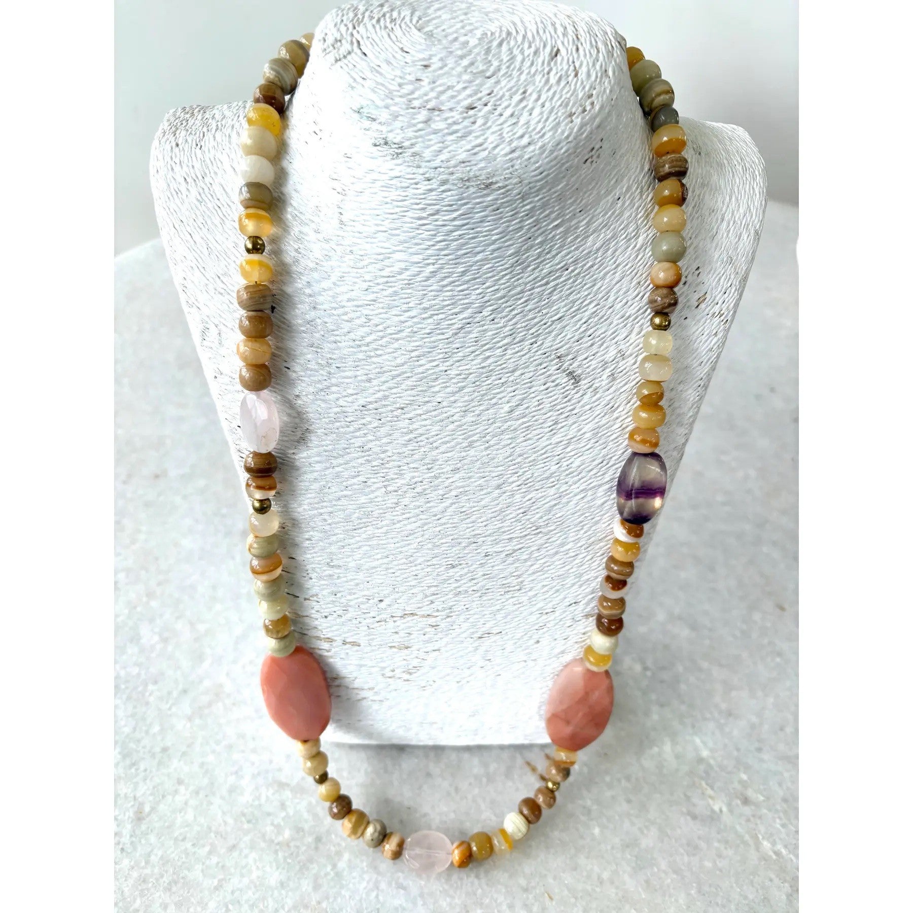 Hermoso collar de ágata vintage y piedras variadas, diseñado por Matthew Izzo.