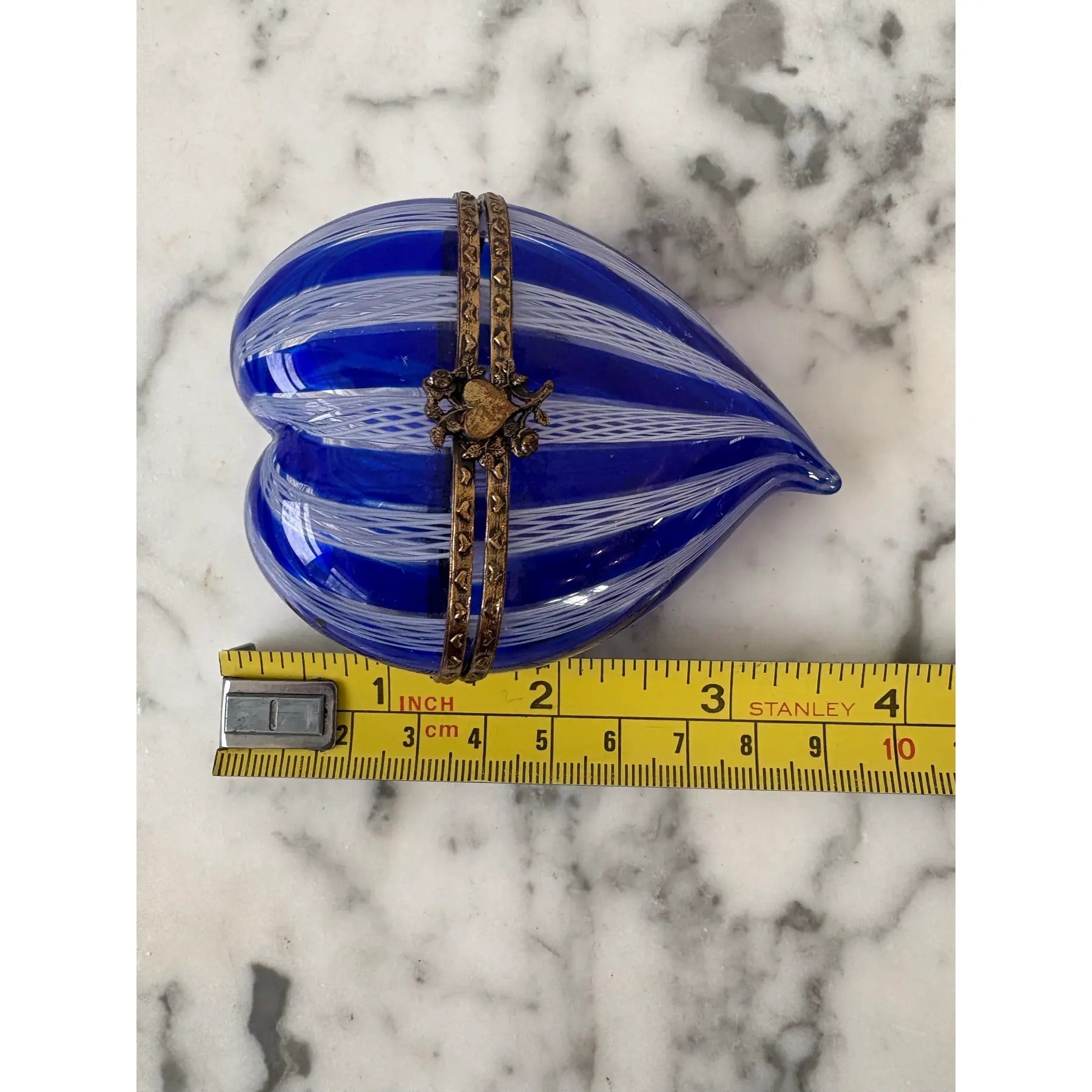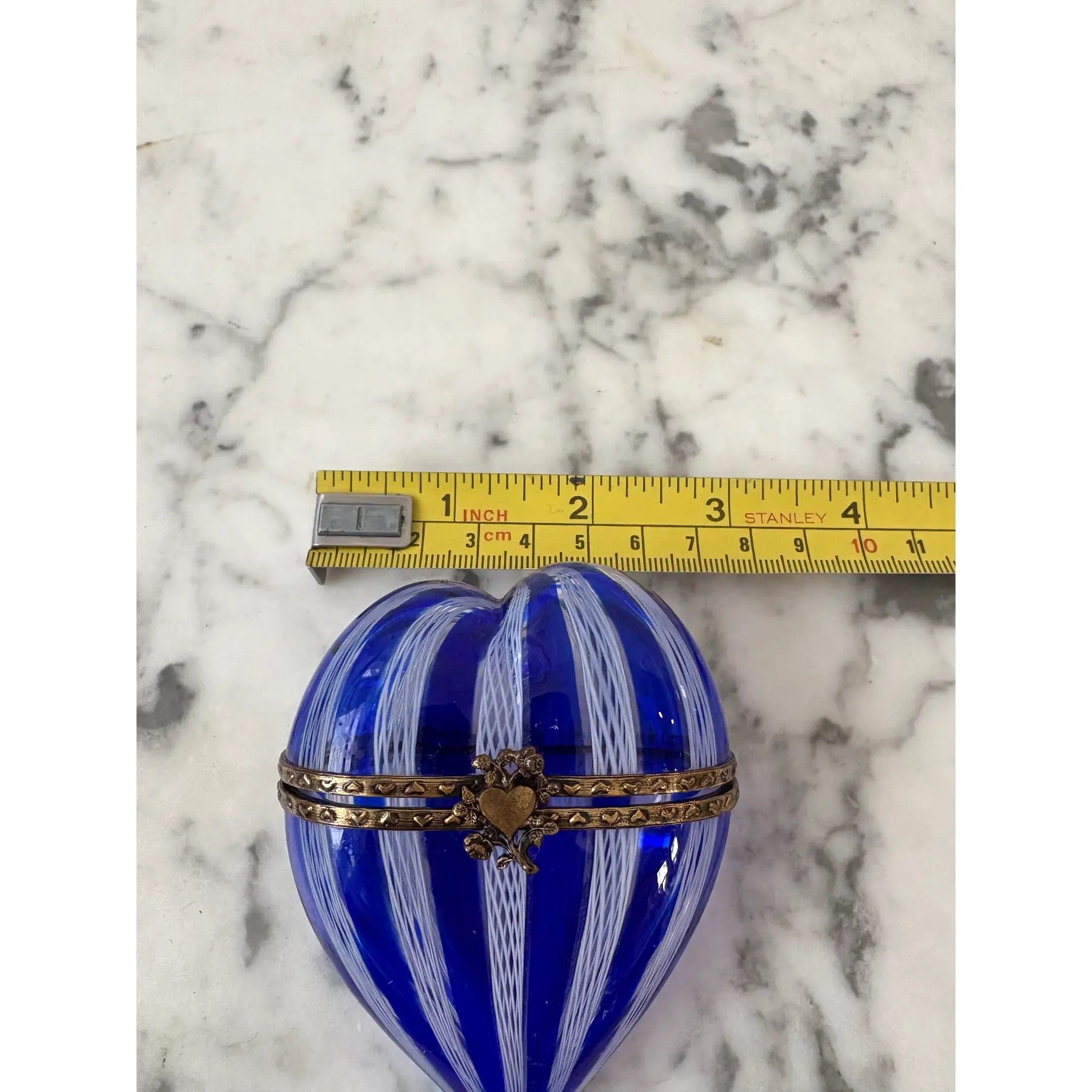 Caja de baratijas de cristal veneciano con forma de corazón Latticino de Murano