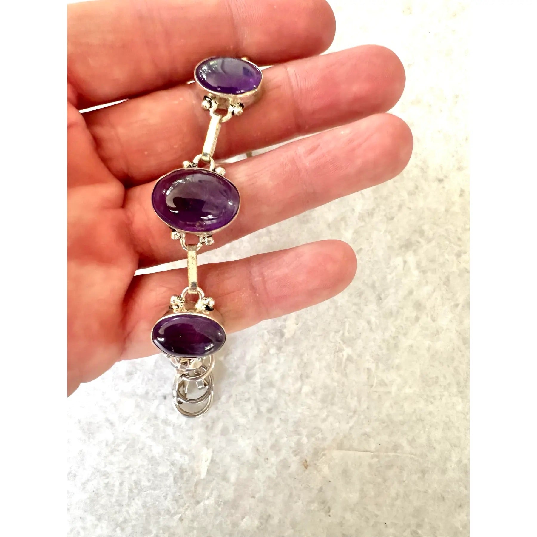 Preciosa pulsera de plata de ley y amatista.