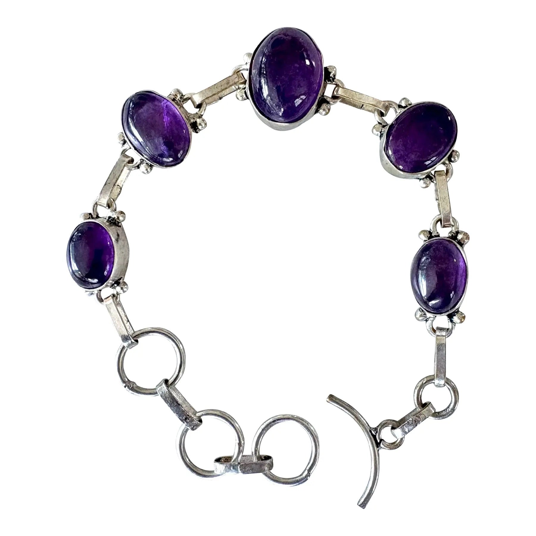 Pulsera de eslabones de plata de ley y amatista
