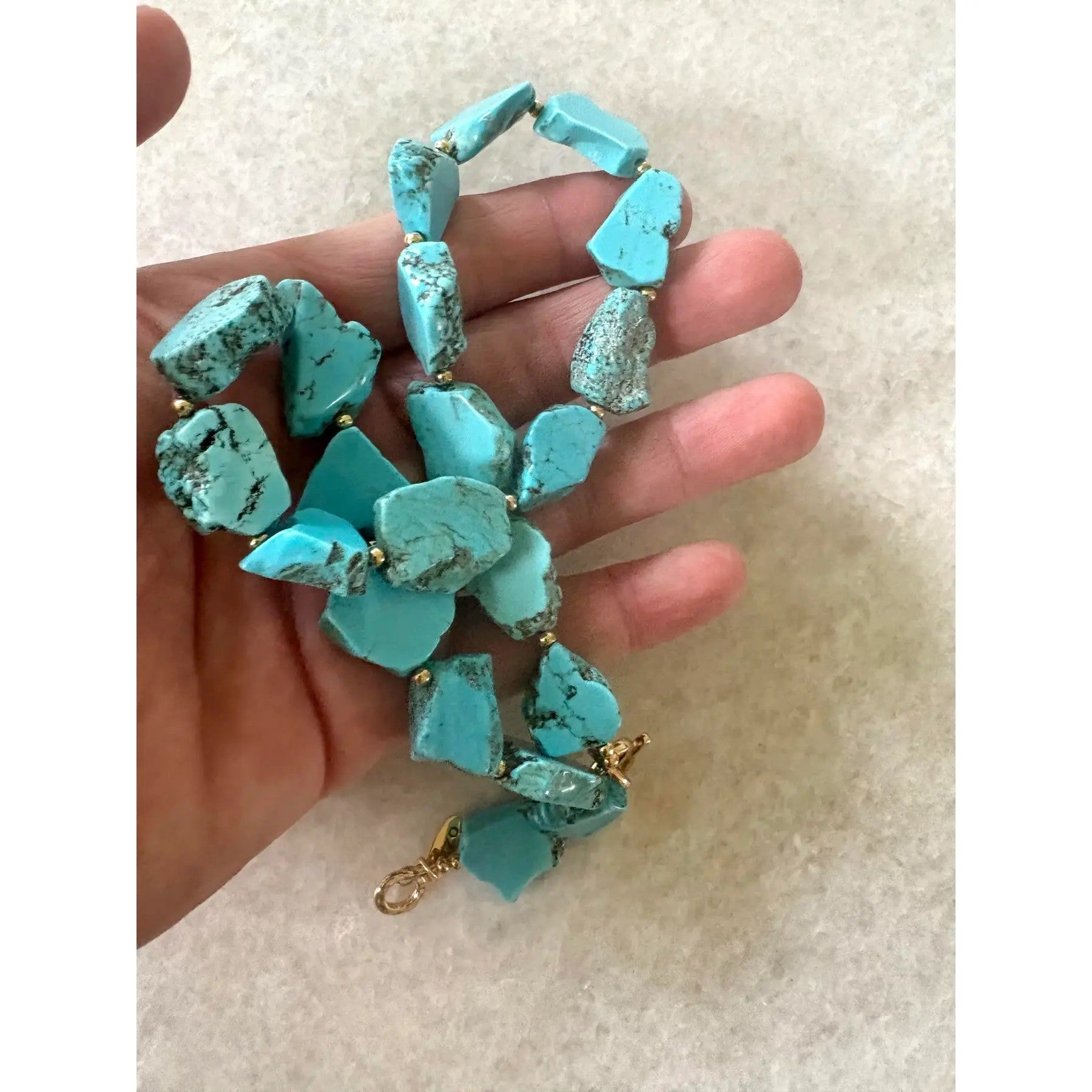 Precioso collar de cuentas turquesas con broche de gancho dorado de 18” Diseñado por Matthew Izzo