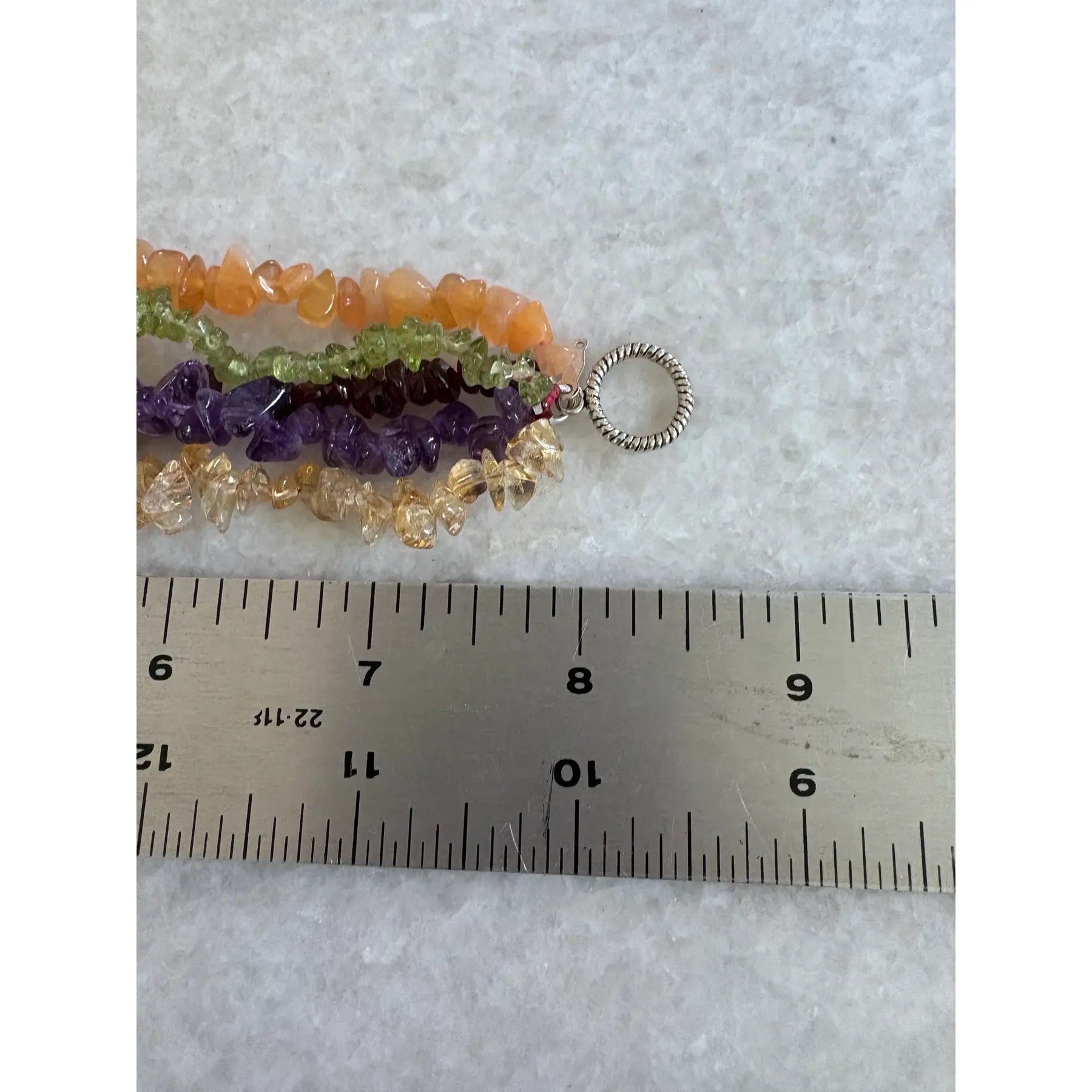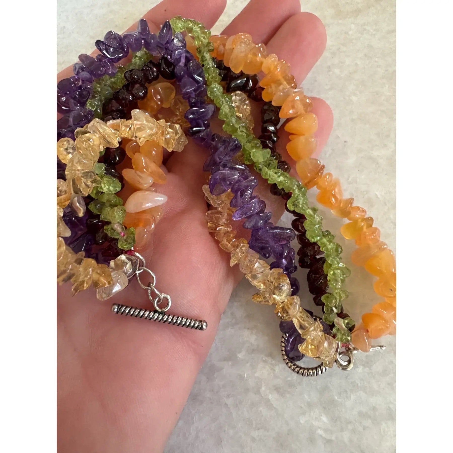 Pulsera Vintage de Cuentas Multicadenas con Amatista, Cornalina, Citrino, Peridoto y Granate - Broche de Plata de Ley