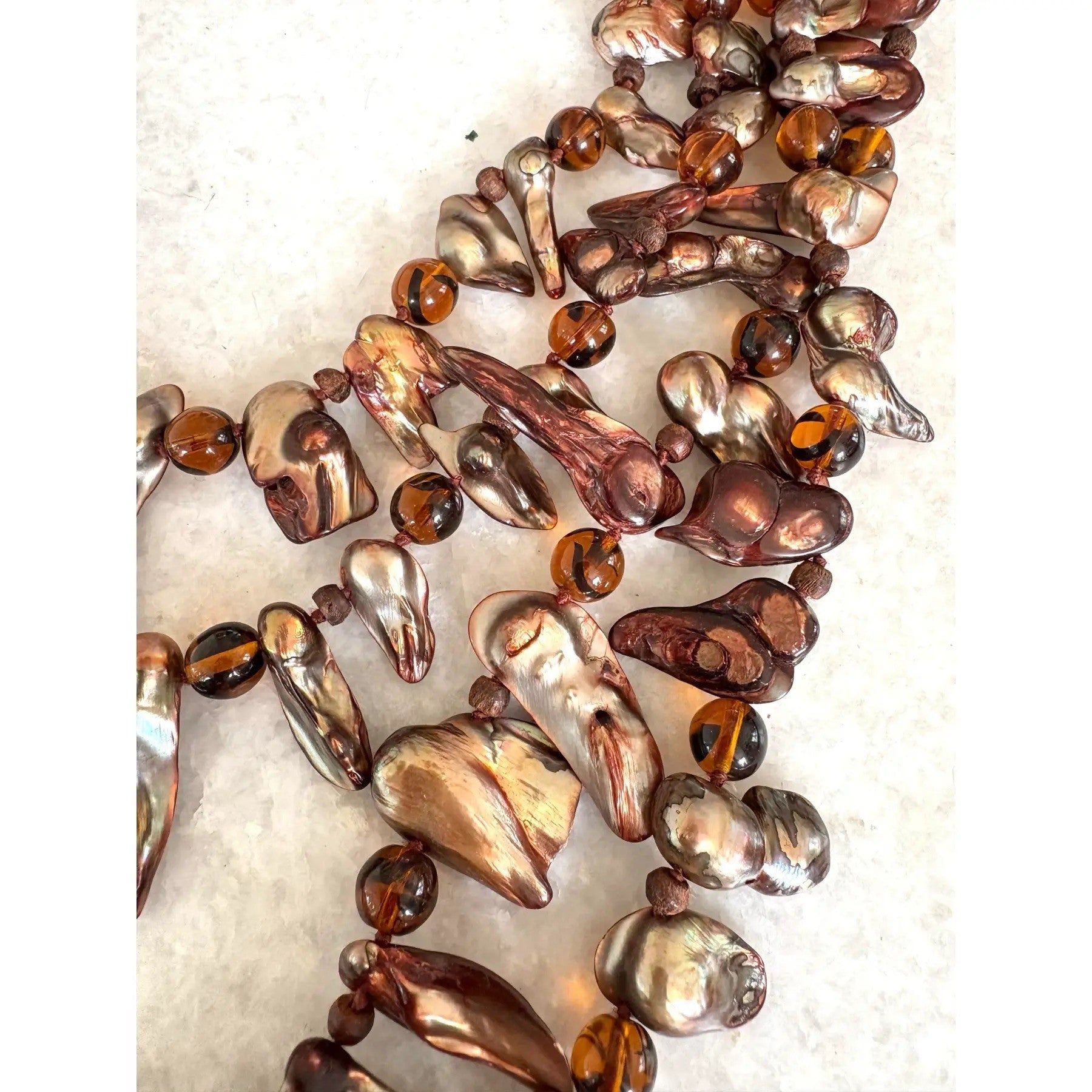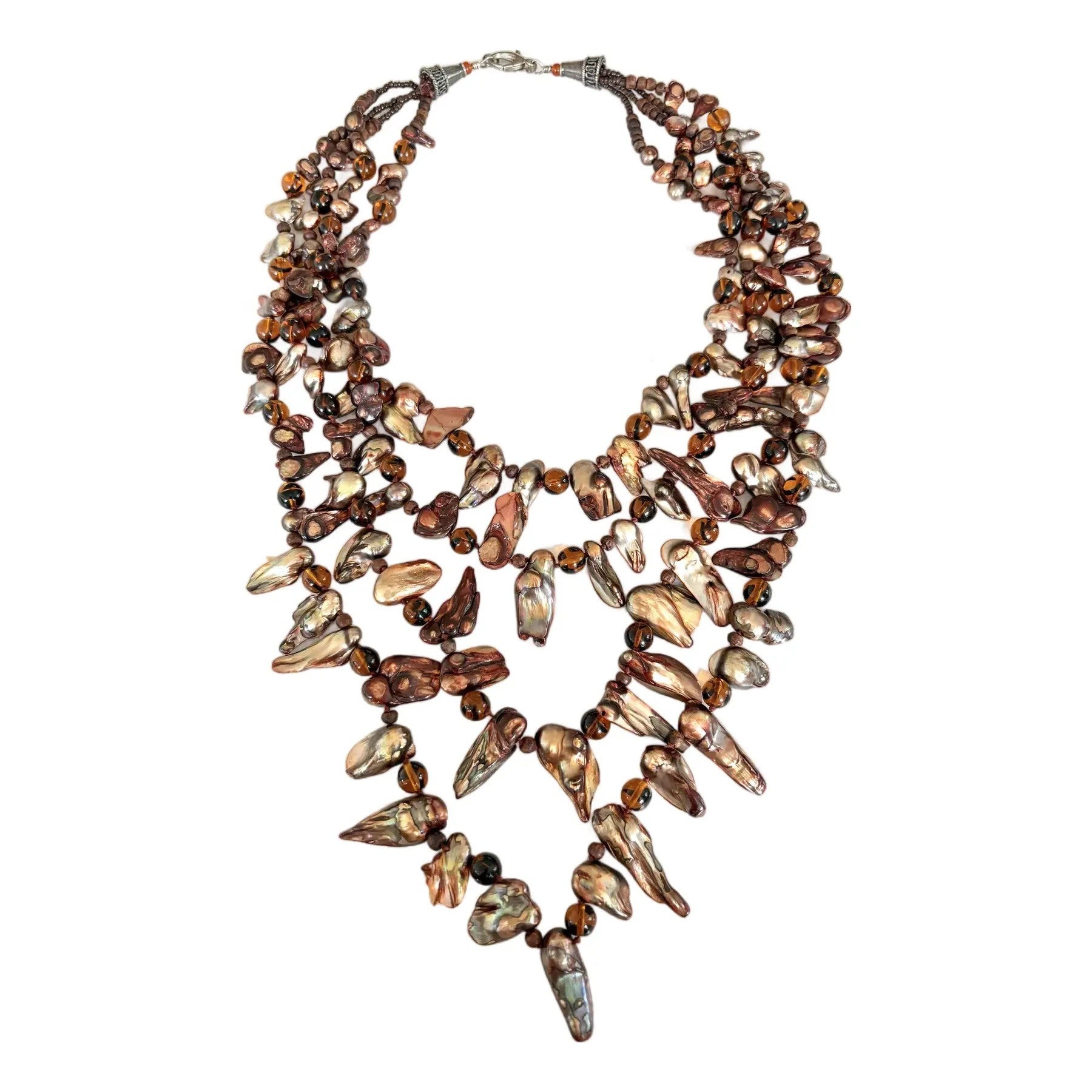 Impresionante y único collar vintage de perlas de agua dulce de varias hebras. Estilo babero.