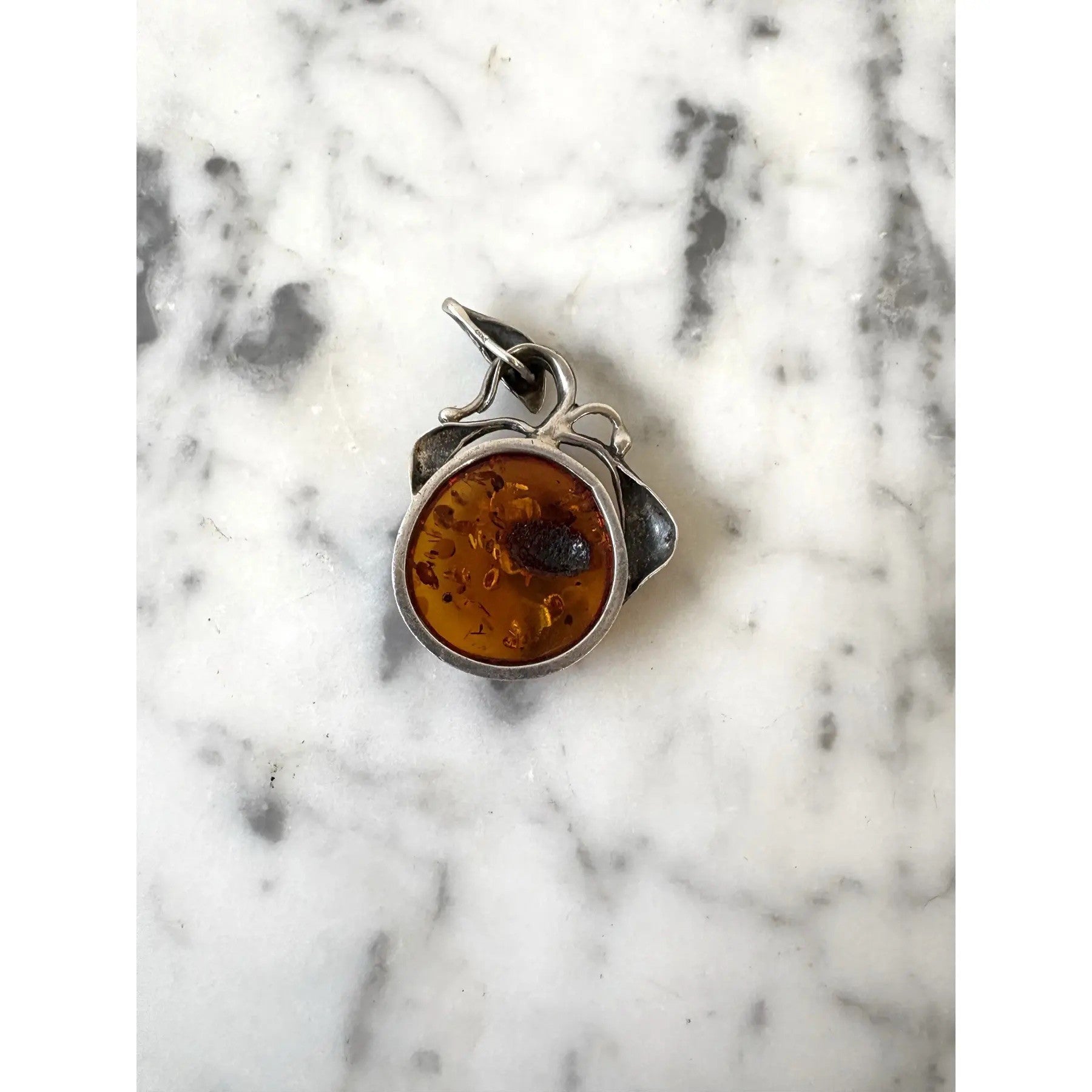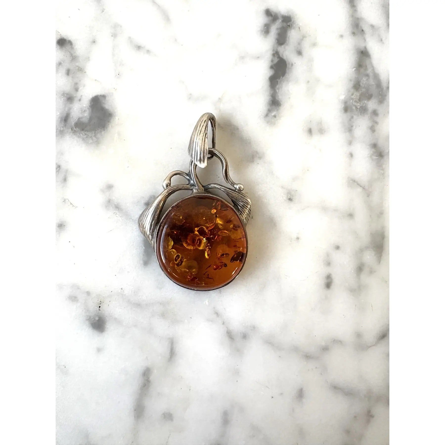 Colgante de plata de ley y ámbar vintage