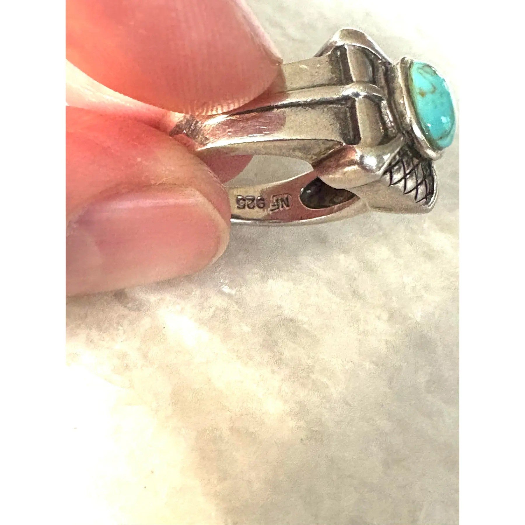 Maravilloso anillo de plata de ley y turquesa.