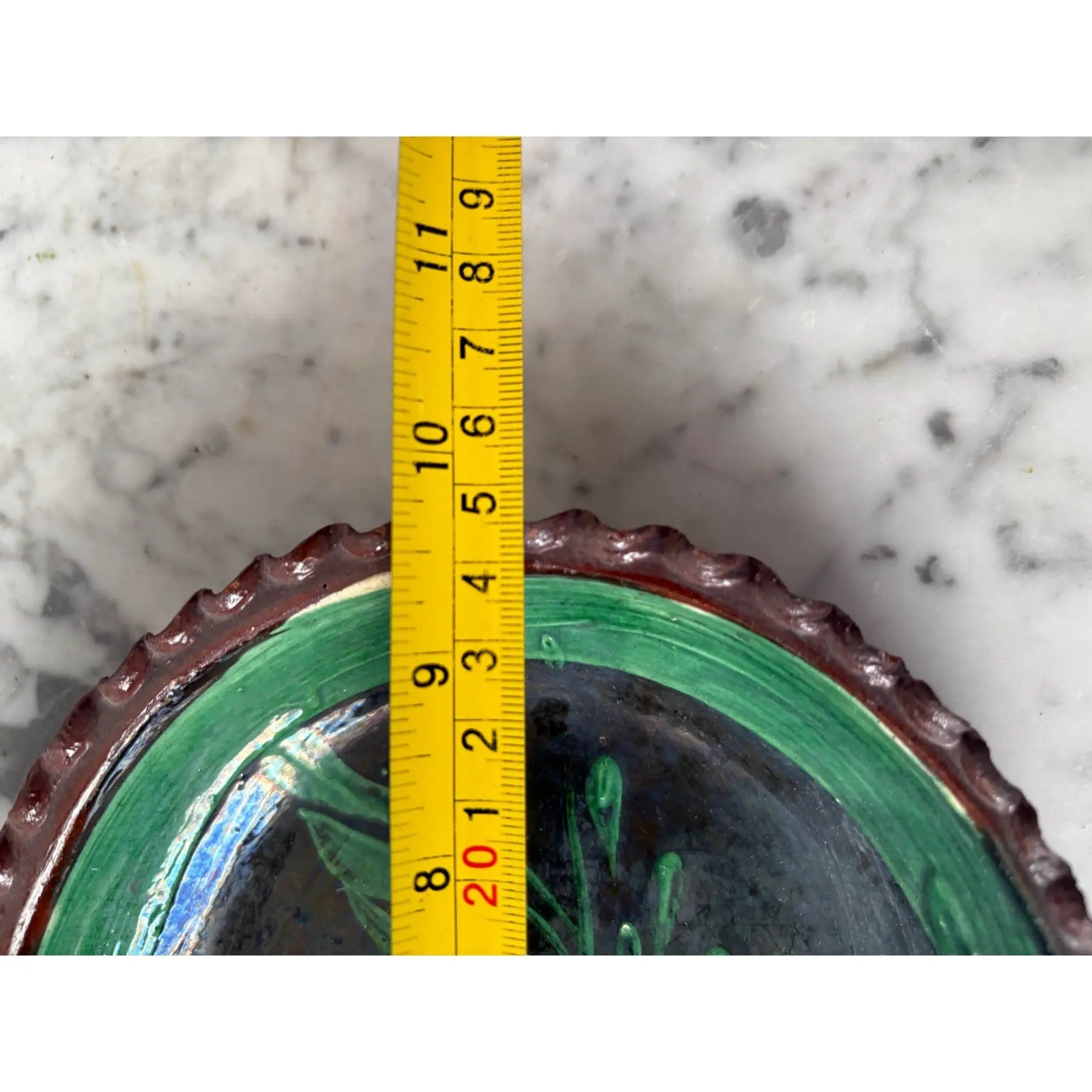 1930s Patamban Michoacan, Mexico green glaze redware pottery platter.